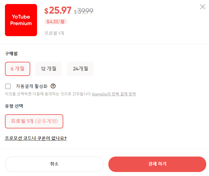 🎥 겜스고로 유튜브 프리미엄을 더 저렴하게! 🎶