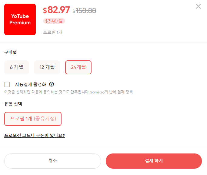 겜스고를 통해 유튜브 프리미엄을 더 저렴하게 이용하고, 좋아하는 콘텐츠를 자유롭게 즐기세요! 🎉