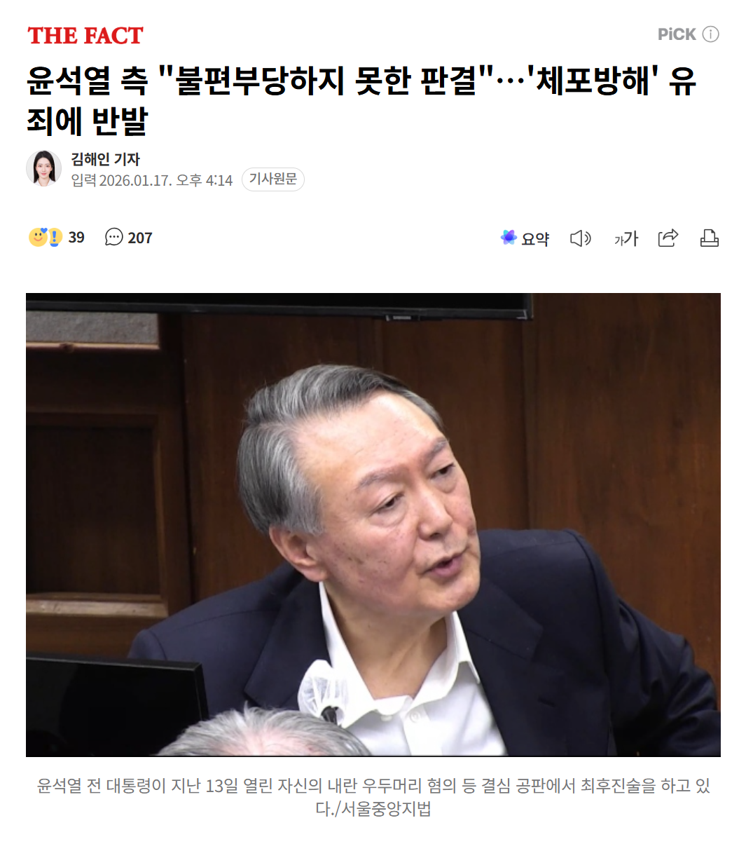 가장 최근 소식입니다. 서울중앙지법은 고위공직자범죄수사처(공수처)가 기소한 '체포 방해' 및 '계엄 절차 위반' 혐의에 대해 징역 5년을 선고했습니다.